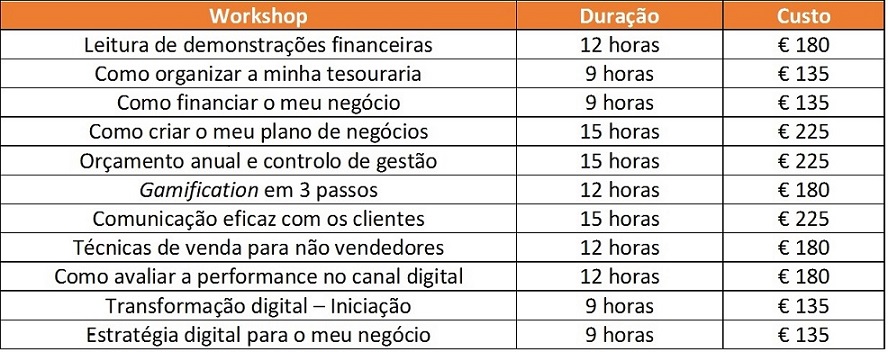 Dada a evolução constante do mercado de trabalho, que implica que os profissionais adaptem os seus processos de trabalho à nova realidade, desenvolvemos um conjunto de workshops de curta duração que visam melhorar as competências e conhecimentos dos participantes.